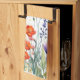 This vibrant watercolor wildflowers personalized kichen towel showcases a pattern with lively mix of purple, orange, and red jewel-toned blooms, paired with sleek modern script typography.