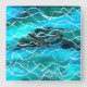 Vibrant Waves Clock, Turquoise, White, Black Square Wall Clock