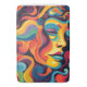 Vivid swirls and curls in a rainbow of colors create the abstract profile of a man or woman with a peaceful expression. Shades of blue, orange, yellow, and red blend harmoniously to outlines facial features and flowing hair.
