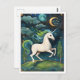 Vibrant White Unicorn in Magical Night Postcard