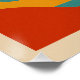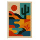 Pop minimalism and sharp colors give life to this graphic desert, where turquoise cacti, black palm trees and a bright red sun stand out from a bright cyan sky. This poster with a neat outline evokes the codes of the vector drawing and brings a retro fun touch to any room.
