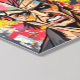 This captivating digital art piece features a striking human face at the edge of an abstract, vivid design. The bold colour palette and dynamic composition draw the viewer in, evoking a sense of curiosity and wonder. This modern artwork combines elements of drawing, painting, and graffiti to create a visually stunning illustration that commands attention.