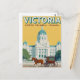 A charming vintage-style travel poster for Victoria, British Columbia, Canada. This artwork showcases the grand Parliament Building and a traditional horse-drawn carriage—iconic symbols of the city. The bold, yellow and teal palette gives the design a bright, retro feel. It's the perfect postcard for travel lovers, fans of Canadian scenery and history, or anyone collecting classic architecture and Art Deco-inspired designs.