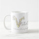 Decorated hand drawn letter with your own name beginning with V and name meaning mug. Pretty heart and flower capital V doodled typographic design featuring hearts and flowers and the words Victoria Victorious. A caring, brave fighter. © Unique art and design by Sarah Trett. www.sarahtrett.com for www.mylittleeden.com on zazzle.