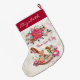 Victorian Antique Rocking Horse & Poinsettia Large Christmas Stocking