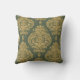 A very fanciful gold damsk print on a dark green background. Very elegant.