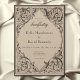 Elevate your gothic wedding with a Victorian-inspired handfasting invitation that exudes timeless elegance and mystery. Designed to resemble an antique book binding, this stunning design features intricate a black lacey filigree on brown kraft paper, evoking the charm of a bygone era. The back holds the first initials of the couple. The wording, "Til Death Do Us Part" can be edited and changed, or deleted entirely, if you prefer. Let your love story unfold with an invitation as unforgettable as your day. Created by Simply Farmhouse Press.