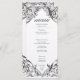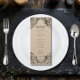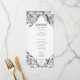 Elevate your gothic wedding with a Victorian-inspired wedding menu that exudes timeless elegance and mystery. Designed to resemble an antique book binding, this stunning design features intricate black lacey filigree on brown kraft paper, evoking the charm of a bygone era. Let your love story unfold with a program as unforgettable as your day. Created by Simply Farmhouse Press.