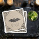 Elevate your gothic wedding with a Victorian-inspired wedding cocktail napkins that exudes timeless elegance and mystery. Designed to resemble an antique book binding, this stunning design features intricate black lacey filigree on a tan brown kraft paper-looking background, evoking the charm of a bygone era. A bat with its wings spread, sits in the middle. Let your love story unfold with a table number card as unforgettable as your day. Created by Simply Farmhouse Press.