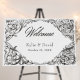 Elevate your gothic wedding with a Victorian-inspired wedding welcome sign that exudes timeless elegance and mystery. Designed to resemble an antique book binding, this stunning design features intricate a black and white lacey filigree, evoking the charm of a bygone era. Let your love story unfold with an invitation as unforgettable as your day. Created by Simply Farmhouse Press.