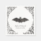 Elevate your gothic wedding with a Victorian-inspired wedding cocktail napkins that exudes timeless elegance and mystery. Designed to resemble an antique book binding, this stunning design features intricate a black and white lacey filigree, evoking the charm of a bygone era. A bat with its wings spread sits in the middle. Let your love story unfold with a table number card as unforgettable as your day. Created by Simply Farmhouse Press.