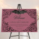 Elevate your gothic wedding with a Victorian-inspired unplugged wedding sign that exudes timeless elegance and mystery. Designed to resemble an antique book binding, this stunning design features intricate a black and wine lacey filigree, evoking the charm of a bygone era. A bat with its wings spread sits at the top. Let your love story unfold with an invitation as unforgettable as your day. Created by Simply Farmhouse Press.