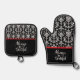Victorian Black and White Damask Pattern Oven Mitt & Pot Holder Set