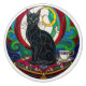 Elegant Victorian Black Cat ceramic knob / door pull featuring colorful mosaic background and black cat sitting on a pillow. Beautiful vintage art ceramic knobs to make your home into unique artistic place, easily transforming almost anything in your surroundings.