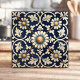 This stunning Victorian-inspired tile features intricate ivory daisies with golden centers set against a rich navy blue background. Delicate vine and floral tracery create a timeless design that exudes elegance and charm. Perfect for backsplashes, accent walls, or decorative projects, this tile brings a sophisticated vintage aesthetic to any space. The carefully crafted details and balanced symmetry make it a standout piece in both traditional and modern interiors.