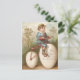 This spring send someone an Easter greeting! This vintage print depicts a cute little boy riding a bicycle with Easter eggs for wheels.