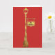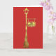 A red card features a gold, metallic look lamp post with a hanging sign that can be personalized if you wish.