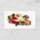 Victorian reproduction calling card with a colorful picture of a ladies hand red roses, a dove and the words, "May joy be around you.".