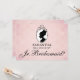 A pretty 60s style silhouette cameo on a pale pink distressed backdrop. You can personalize the front and back messages for your wedding party