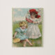 These sweet little girls are taking a break to soak their hot feet. This is a beautiful illustration from the late 1800's, when children played in lovely clothing in the garden.