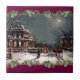 Tile with holly, bells, and a snowy moonlight scene as guests arrive by horse and sleigh for a Christmas Party at the brightly lit Victorian Mansion.
