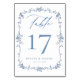 Victorian Dusty Blue Elegant Wedding Table Number