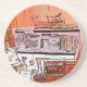 I'm not sure how much moisture these will soak up, haven't had a chance to try them out, but they look good and I like the cork backing. The printing is fine ~ and really looks cool with an artisan's hand made "Hurricane Martini" glass sitting on top of my painting (on the coaster) in my studio.