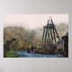 A watercolor of a Victorian couple walking past the mine wheel on a cold winter day.