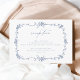 Victorian Floral Dusty Blue Reception Wedding Enclosure Card