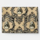 The Victorian style is a style of architecture, decorative and visual arts among other areas, characterized by being romantic and Gothic. In this cream colored background design, a diamond-shaped frame with a skull inside it stands out.