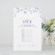 Introducing our stunning French Blue & White Victorian Bridal Shower Game! This game "name that spice" is the perfect addition to your upcoming bridal shower. It features a refreshing mix of traditional and modern style, with classic hand drawn blue Victorian florals of garden flowers, bees, and butterflies on one side. Plus, you can customize it with your own bridal details in modern hand lettered calligraphy to make it truly unique. And as a special added touch, turn it around to find a coordinating blue texture on the back adding even more detail. Don’t hesitate - this one-of-a-kind game will make your event one everyone will remember! View suite here: https://www.zazzle.com/collections/french_blue_white_victorian_floral_bridal_shower-119265327422133417 Contact designer for matching products. Copyright Surridge Design Co. for Elegant Invites, all rights reserved.