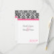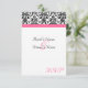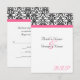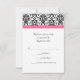 Small RSVP card to match our Elegant fuchsia hot pink, black and white wedding invitation, with elegant floral damask accent, and colored horizontal accent strip. Customize online with your wedding details.