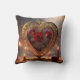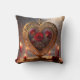 Victorian golden heart with red roses, vintage throw pillow