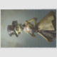 An Anthropomorphic Cricket lady that showcases a whimsical cricket character with a touch of Victorian elegance. The anthropomorphic cricket stands upright, donning a sophisticated Victorian-era ensemble complete with a high-collared shirt, vest, coat, and a top hat adorned with steampunk-inspired gears and a skull. The cricket’s green body contrasts with its red eyes and the monochromatic background, drawing attention to its large, expressive gaze. It holds a cane and carries a leather satchel, adding to its distinguished appearance.