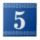 Victorian House Number Tile - White on blue with a printer's border. House numbers, room numbers, signs. Can also be changed to letter tiles.