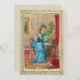 A reprint of an antique card from 1875 featuring a beautiful Victorian lady at her writing desk.
