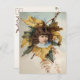 Vintage leaf girl creepy art postcard from the late 1800s. High quality, restored vintage image.