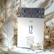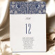 This Victorian Love Birds Table Number Card adds a touch of antique elegance to your wedding reception decor. The front showcases a sophisticated navy blue background with an ornate cream floral pattern that exudes the grandeur of the Victorian era. A pair of monogrammed love birds adds a personalized touch, signifying the unity of the couple. The bold table number is displayed in a clean, classic font, providing easy navigation for guests while complementing the vintage aesthetic. The back of the card echoes the front design, ensuring consistency and style at every angle. These cards are more than just practical; they are a beautiful keepsake that honors the past while celebrating the present.