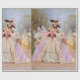 Victorian Masquerade Ball Mardi Gras Party featuring lovely vintage painting of lady in purple gown with hat beside a harlequin and others in masquerade fashion costumes. -