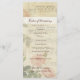 This lovely card describes your order of ceremony on one side, and lists your wedding party on the other. It features a vintage design of roses and music.