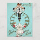 Vintage Victorian new years postcard. This charming vintage New Year illustration features a Pierrot figure kneeling in admiration, arms outstretched toward a Pierrette seated atop a golden clock face striking midnight. With soft pastel colors, delicate line work, and classic theatrical costumes adorned with black and red pom-poms, the artwork embodies the romance and excitement of welcoming the new year. The text "A Happy New Year" in flowing script completes the festive design, making it ideal for greeting cards, holiday decor, or nostalgic displays. High quality, restored vintage photo from the early 1900s.