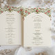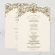 This elegant Victorian wedding program features a grand gold arch adorned with climbing vines of pink roses and delicate greenery. The intricate floral details and classic column design exude timeless sophistication and romantic charm. Perfect for couples seeking vintage-inspired wedding stationery with a luxurious aesthetic and a touch of floral elegance.
