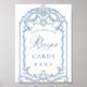 Victorian Ornate Grace Floral Blue Recipe Cards Poster