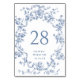 Victorian Ornate Grace Floral Dusty Blue Wedding Table Number
