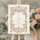 A refined and graceful wedding design with an ornate Victorian-style frame, delicate floral accents, and elegant scrollwork in soft hues of lavender, gold, and coral. Ideal for a romantic and timeless celebration with vintage sophistication.