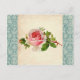 A beautiful Victorian rose illustration from a calling card is set on an aged background with an aqua or turquoise damask border. A beautiful shabby chic or vintage design for the feminine, yet elegant, girly girl!