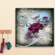 Lovely, vintage, red rose florals on newspaper print, featuring a faux pearl brooch and necklace, birdcage with teal bow to create a luxury, extravagant, shabby chic style.