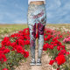 The dainty interlinked rosette design at the waist is truly unique. The poly-spandex makes for a nice fit and available in sizes 0-16. The printing is vibrant and eye-catching.