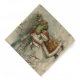 Vintage Santa Claus Carrying a Christmas Tree in the Snow - Since when does Santa actually bring a tree with him? This image is based on a vintage Christmas Card from the late 1800s. Back then, Santa didn't always wear red. In this Santa Claus illustration, St. Nick is wearing a warm brown suit, and his bag of goodies is green. Santa Claus is walking through the snow, with a Christmas tree on his back. The snowstorm looks cold! Early cards of vintage Santa showed Santa in brown, green and red suits in the late 1800s. This card says "A Merry Christmas" -- and even though our Santa is wearing a brown suit, after all, he deserves a bit of a wardrobe change now and then! He's carrying a bright new drum in his package. I wonder what else Santa has in his toy bag?