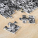 A difficult and challenging Victorian steampunk jigsaw puzzle features gears, binoculars, a clock. birdcage, submarine and octopus sculptures. Victorian wallpaper provided the background. All of the steampunk elements were nestled in gray and white hydrangea flowers, black roses and deep green and black leaves and vines. These botanical elements give it an overgrown deserted look. A steampunk fan will spend many hours piecing this together.